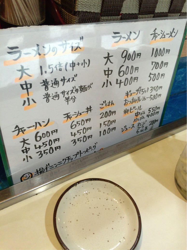 ラーメンもサイズ別になっているのが、ワタクシの好きな老舗『のり一』と同じネ!