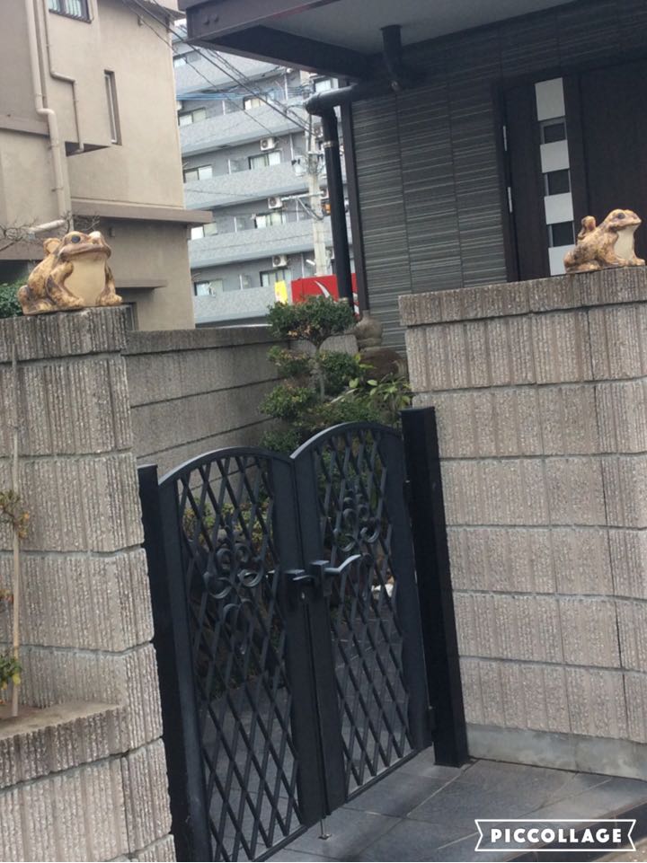 石敢當から程近いお宅でこんな風変わりシーサーもとい、カエル見つけたもんだから