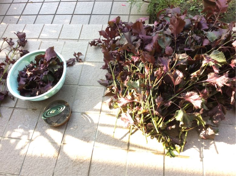 畑で自生してる赤シソを刈り取り、