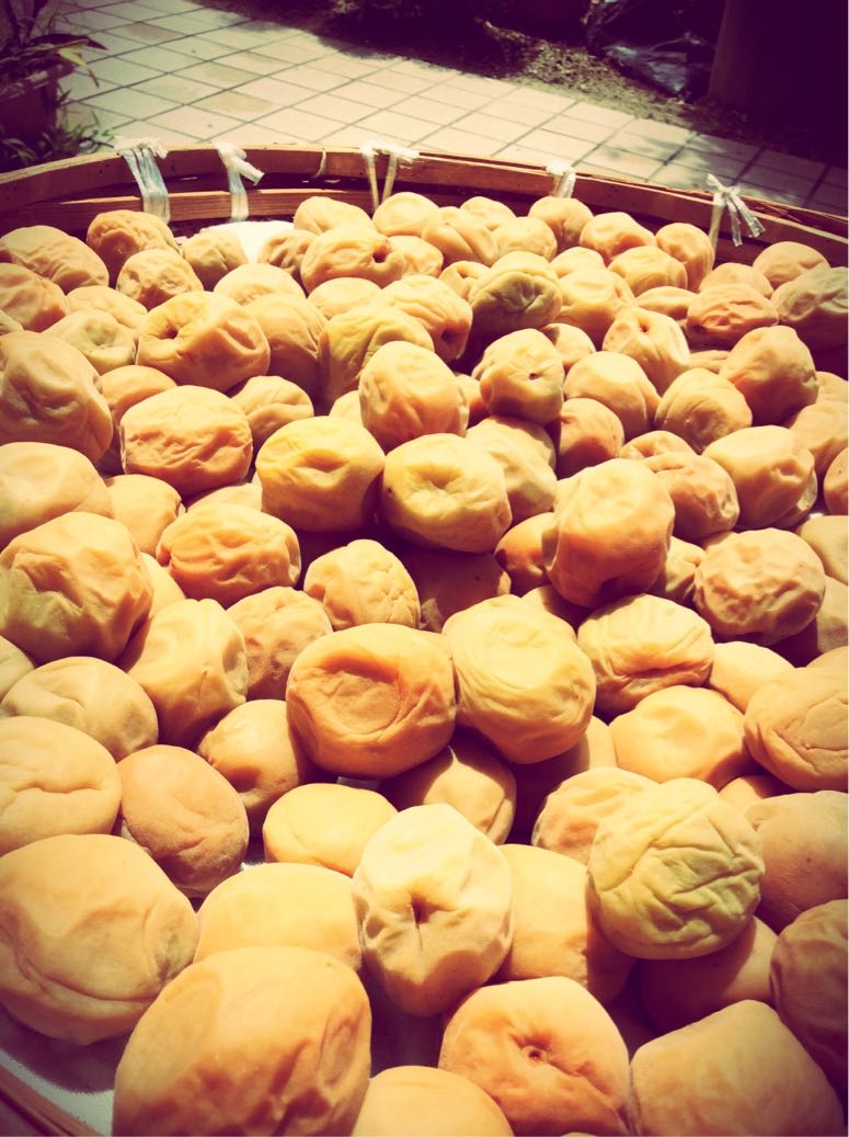 漬け込んだ梅を天日干しで日光浴
