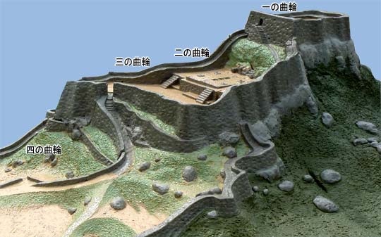 北城は石垣で仕切られた一から三の郭が階段状に連なり、