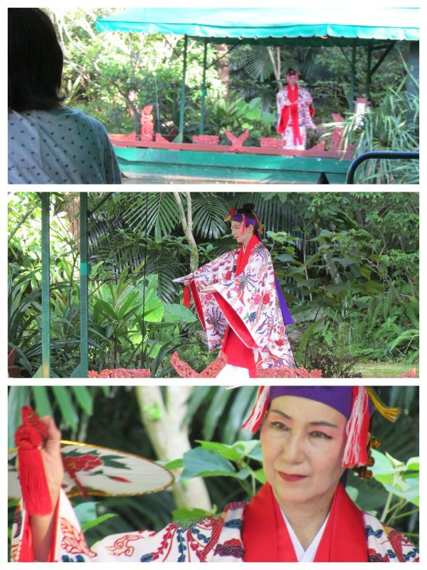 聞こえてきた音楽と共に見えてきた琉装姿の女性。