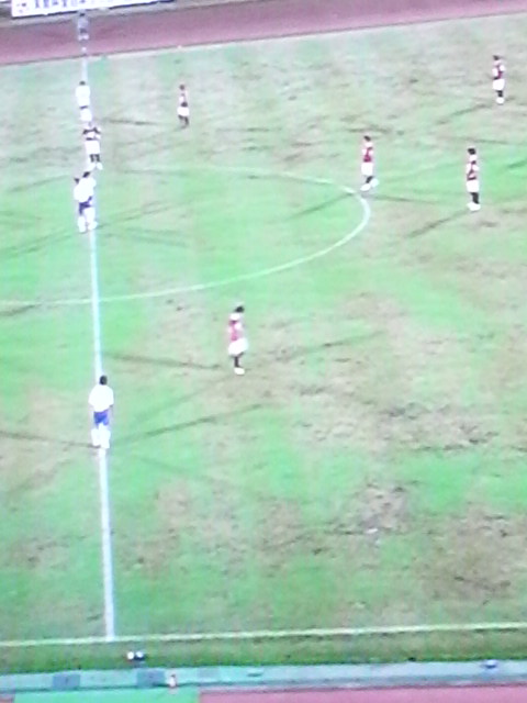 芝というか土のピッチやん!