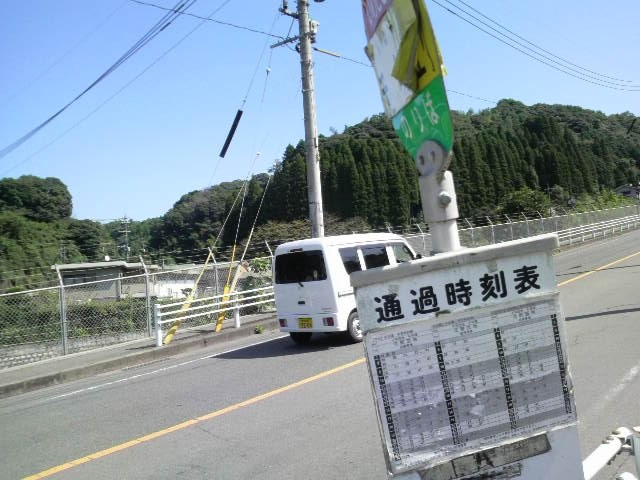 反対車線のバス停で帰りの時間をチェック!